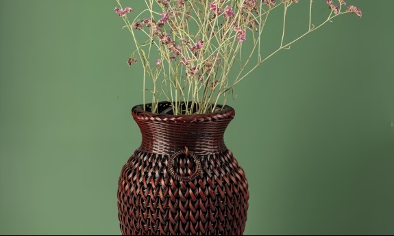 The Tang family’s bamboo weaving uses various types of bamboo, such as purple bamboo, jade bamboo and mao bamboo, to create intricate patterns through a variety of weaving techniques, including overlay, pull-flower, and openwork. Common motifs include pepper eyes, hexagons, and chrysanthemum chains, producing delicate, exquisite pieces.